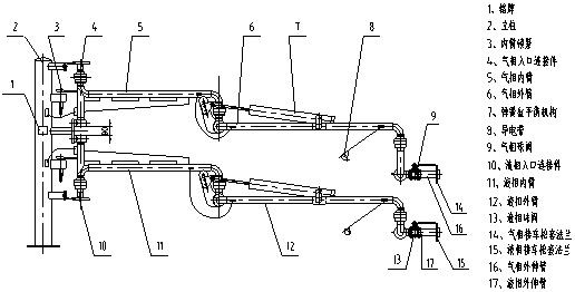 适用介质 适用于液化石油气、液氨、液氯、二甲醚等高挥发性化工介质的汽、火车顶部装卸。配备球阀,采用法兰接车形式。