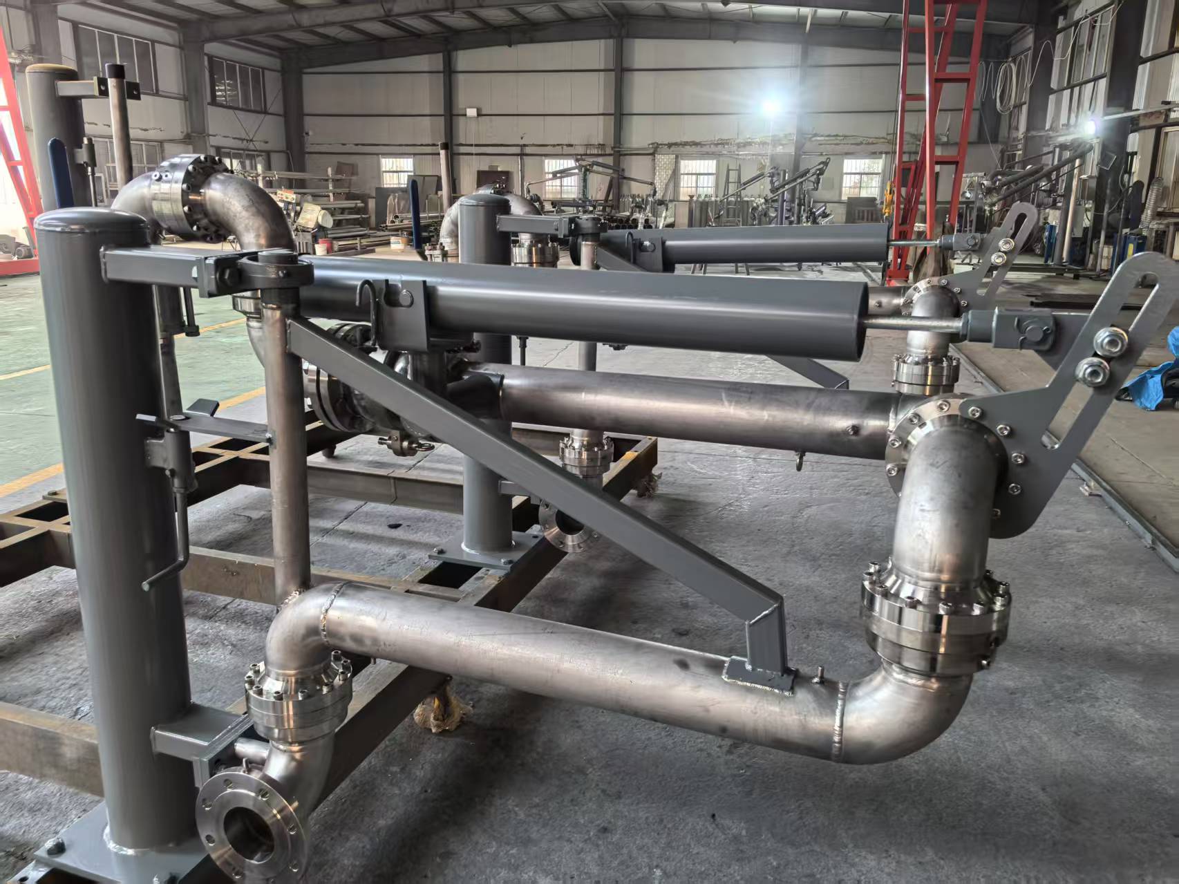 旋转接头数量:决定鹤管的活动自由度。常规装卸车鹤管多为「3 关节」(水平旋转 + 垂直旋转 + 臂长调节),复杂场景(如槽车位置不固定)可选用「4 关节」,提升操作灵活性。
